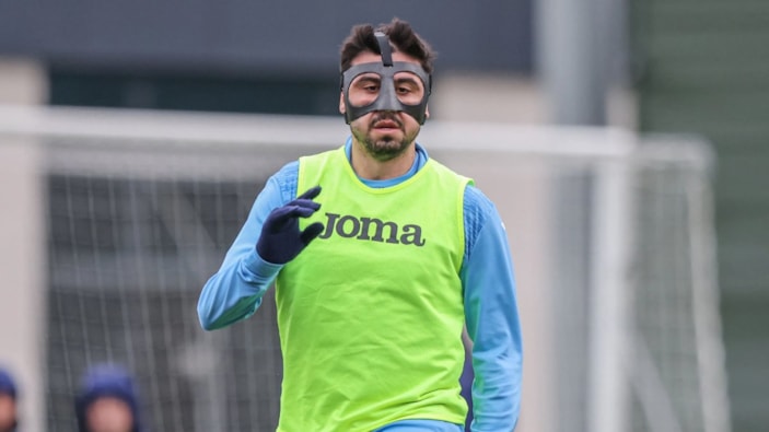 Trabzonspor'un tecrübeli oyuncusu Ozan Tufan, burnundaki kırık nedeniyle özel maske ile antrenmanlarına devam edecek.