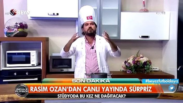 Rasim Ozan Kütahyalı, Beyaz Futbol yayınında izleyicileri kahkahaya boğdu. Kütahyalı, ünlü futbolcu Falcao Galatasaray'a veda ettiği için canlı yayında lokma döktürdü.