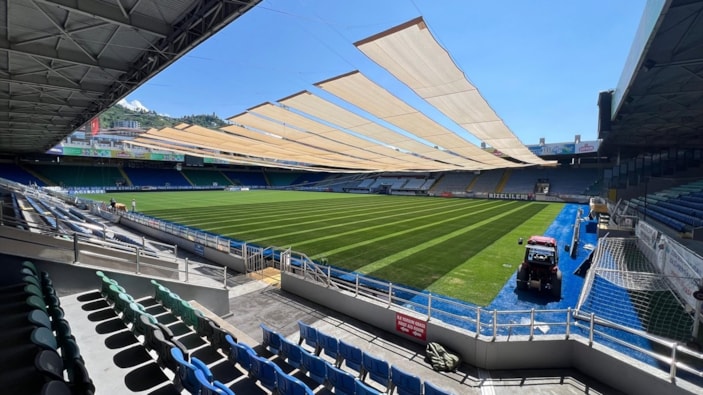 Kulüpten yapılan açıklamada, örtü sistemiyle hibrit zemin içindeki doğal çim bitkisinin aşırı sıcak ve güneşin yakıcı etkisinden korunacağı belirtildi.