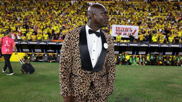 Birbirinden ilginç takım elbiseleriyle tanınan Ekvador kulübü Barcelona'nın teknik direktörü Segundo Castillo, yine dikkat çeken bir tarzla maça çıktı. İşte Castillo'nun leoparlı takım elbisesi...