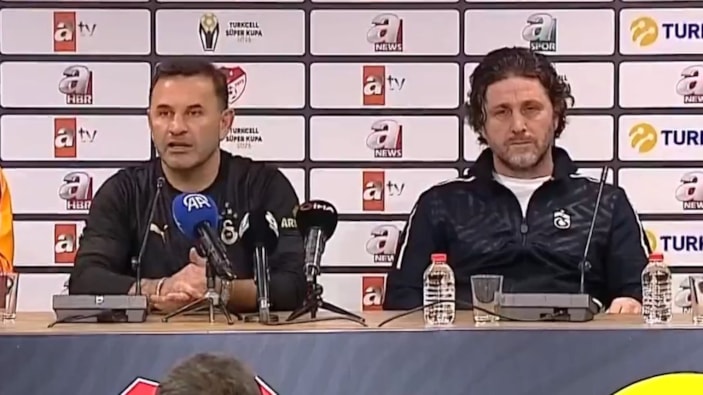 Süper Kupa yarı finalinde yarın Gaziantep’te karşı karşıya gelecek Galatasaray ile Trabzonspor’un teknik direktörleri ve takım kaptanları, maç öncesi düzenlenen ortak basın toplantısında açıklamalarda bulundu.