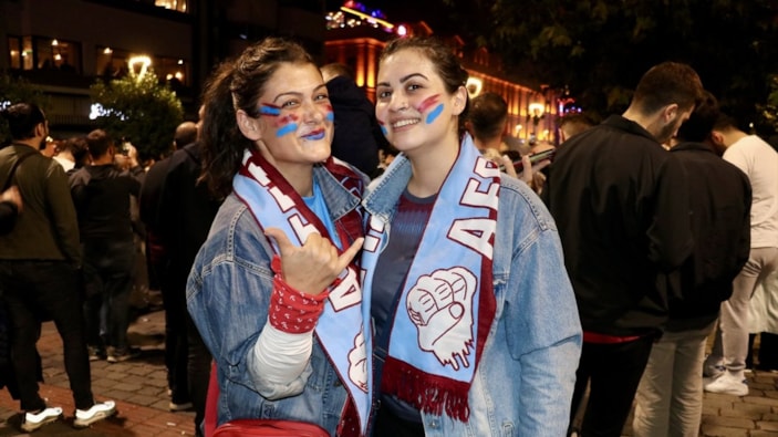 "Şampiyon Trabzonspor" tezahüratlarında bulunup marşlar söyleyen taraftarlar, müzik eşliğinde kolbastı oynadı. Bazı taraftarlar da konvoyla şehir turu atarak sevinç gösterilerine ortak oldular.