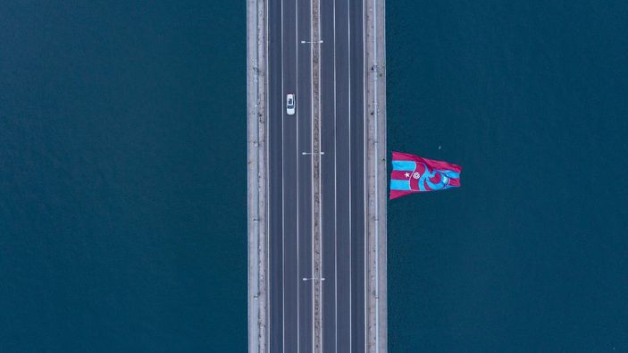 Bu sene de şampiyon Trabzonspor'un bayrağı İstanbul'un göbeğinde 15 Temmuz Şehitler Köprüsü'ne asıldı.