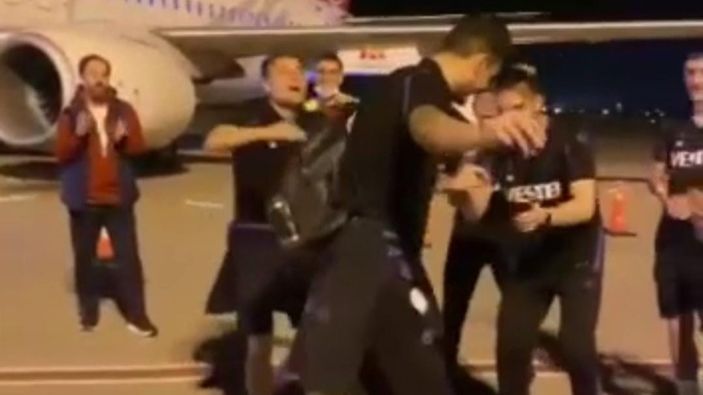 Trabzonsporlu futbolcular havalimanında kolbastı oynadı