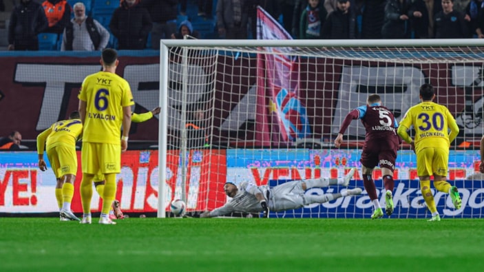 Trabzonspor - Eyüpspor maçının 5. dakikasında Eyüpspor penaltı kazandı. Bordo-mavili takımın milli kalecisi Uğurcan Çakır, köşeyi doğru tahmin etti ve penaltı atışını kurtardı.