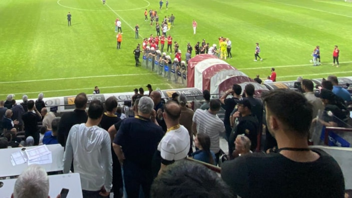 Ardından maçın tatil edildiğini açıklandı.