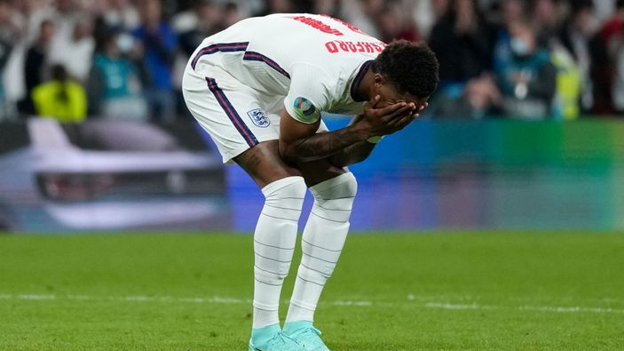 İngiltere milli futbol takımının, finalde 3-2 kaybettiği maçta penaltıları kaçıran siyahi oyuncuları Marcus Rashford, Jadon Sancho ve Bukayo Saka, sosyal medya üzerinden ırkçı saldırılara maruz kaldı.