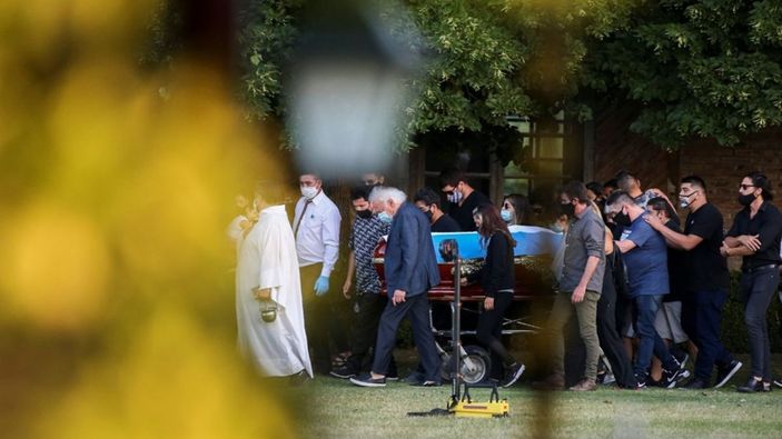 Maradona, Arjantin'in Buenos Aires eyaletinde Bella Vista Mezarlığında, ailesinin isteği üzerine sadece aile bireyleri ve yakın çevresinin katıldığı törenle son yolculuğuna uğurlandı.