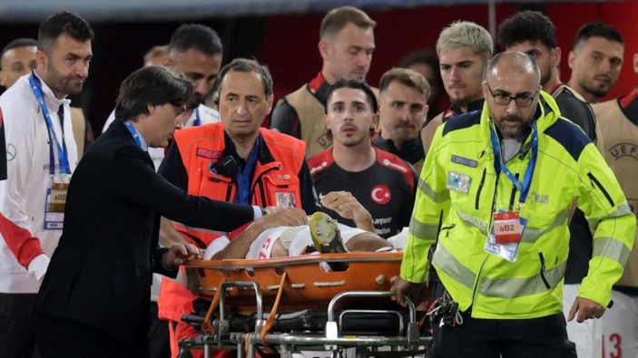 Maçın 39. dakikasında Mateo Retegui ile girdiği ikili mücadelede dizine darbe alan Ozan Kabak, bir süre yerde kaldı ve ayağa kalkamadı.