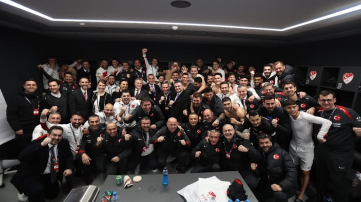 Puskas Arena’da oynanan maçın ardından milli takımın soyunma odasında büyük sevinç yaşandı.