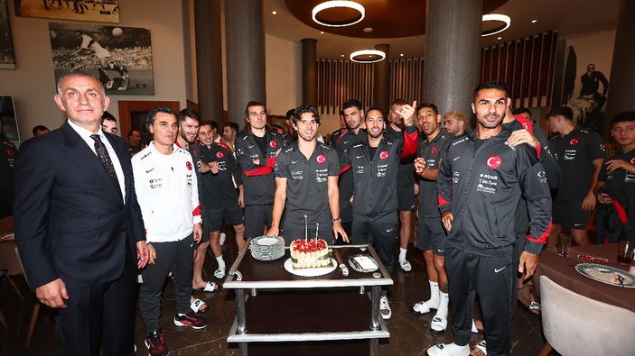 A Milli Takım futbolcularından Ferdi Kadıoğlu'nun doğum günü, Ay-yıldızlıların kamp yaptığı Riva'da kutlandı.