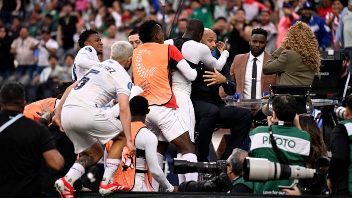 Panamalı futbolcu Cecilio Waterman, ABD'ye attığı son dakika golünün ardından efsane isim Thierry Henry'ye sarıldı.