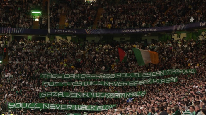 İç sahada oynanan birçok karşılaşmada İsrail işgali altındaki Filistin'e destek veren Celtic taraftarları, Celtic Park ev sahipliğindeki Slovan Bratislava mücadelesinde de açtıkları pankart ve bayraklarla desteğini sürdürdü.
