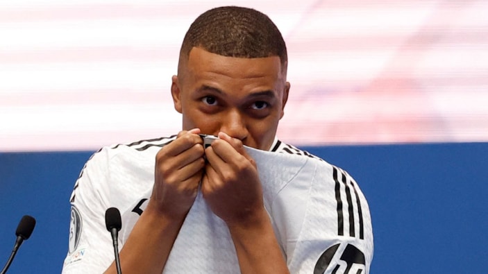 Başkan Florentino Perez'in de yer aldığı törenle Kylian Mbappe, kendisini 5 yıllığına eflatun-beyazlılara bağlayan sözleşmeye imza attı.