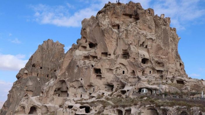 İHA'da yer alan habere göre; Cumhuriyet döneminde 1960'lı yıllara kadar Uçhisar halkının barındığı 179 metre yüksekliğindeki dev peribacası, günümüzde ise bölgeye hakim yüksekliğiyle turistlere doğal güzellikleri kuşbakışı izleme imkanı sunuyor.