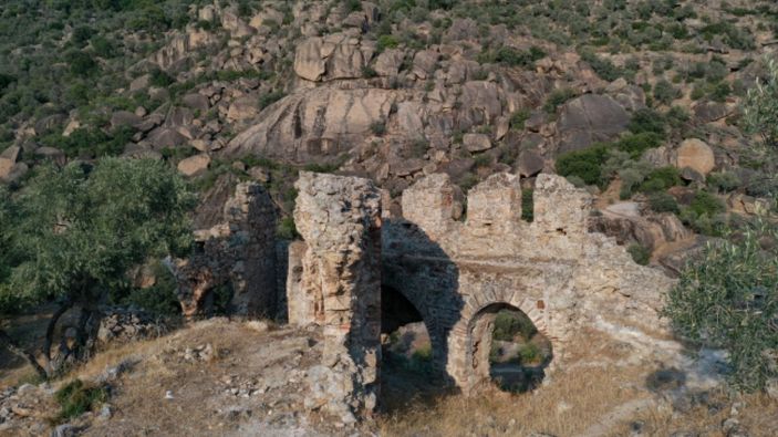 Beşparmak Dağı'na yaslanan Yediler Manastırı antik rotanın uğrak noktası