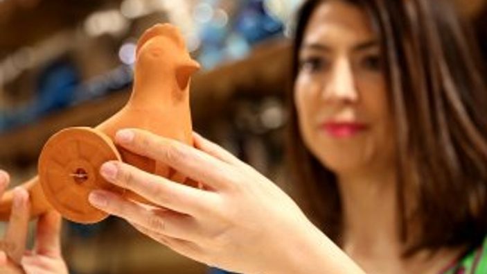 Nevşehir'in Göreme beldesinde sanat galerisi işleten seramik ve çini sanatçısı Nida Olçar, Kapadokya bölgesinin doğal yapısını oluşturan yanardağ tüflerinden elde ettiği özel çamurla, Frig dönemine ait pişirilmiş topraktan yapılmış kuş figürlü 2 bin 700 yıllık oyuncakların benzerlerini yaparak turistlerin ve çocukların beğenisine sunuyor.