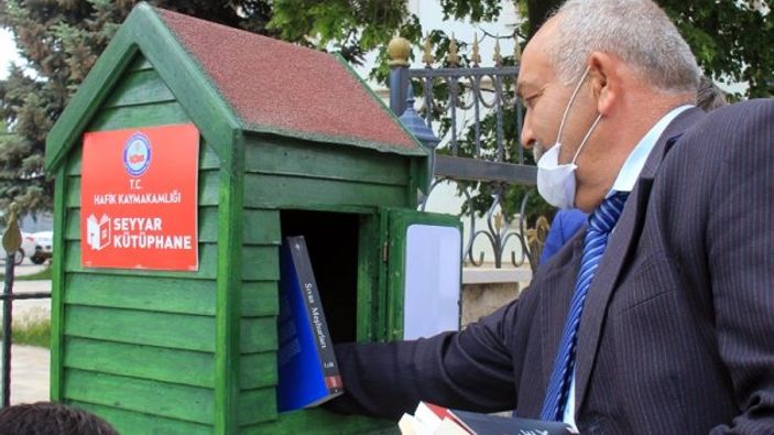 Sivas'ın Hafik ilçesinde kaymakamlık tarafından başlatılan proje kapsamında oluşturulan seyyar kütüphanelerle, hastanede tedavi sırası bekleyenden, camide namaz saati bekleyene kadar herkese ulaşılmas