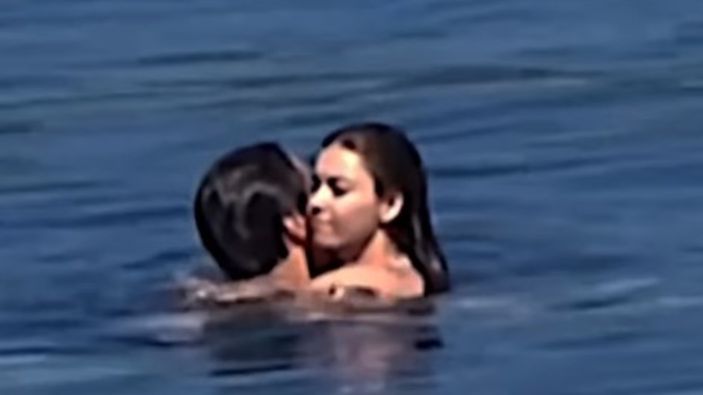 Aşkları belgelenen çiftin, denizde romantik anlar yaşadığı gözlendi.