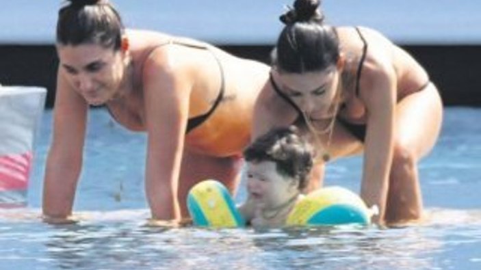 Aslıhan Doğan Turan, Hamza Arda’yı denize soktu. İlk başta denize girmekte zorlanan Hamza Arda, daha sonra ise sudan çıkmak bilmedi.