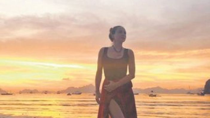 Birkaç gündür Filipinler'de tatil yapan 39 yaşındaki Terzioğlu, dün günbatımında pozlar verdi.