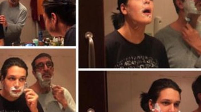 Ünlü oyuncu o anları "Oğlumun ilk saç traşını ben yapmıştım. Ne çabuk büyüdü ve sakal tıraşını öğretmem gerekti. İlk sakal tıraşımız" notuyla paylaştı.