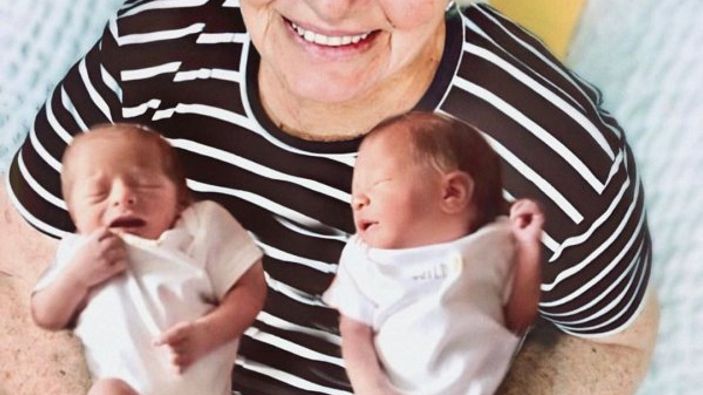 Anne olmadan bir süre önce anneannesini kaybeden Rutkay, ikizlerin Zehra Hanım ile phoshoplanan fotoğrafını sayfasında paylaştı.