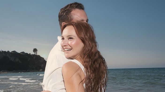 Eşi Çağrı Çıtanak ile kumsalda kot pantolon ve beyaz gömlek temalı pozlar veren güzel oyuncu, sosyal medya hesabından yayınladı.