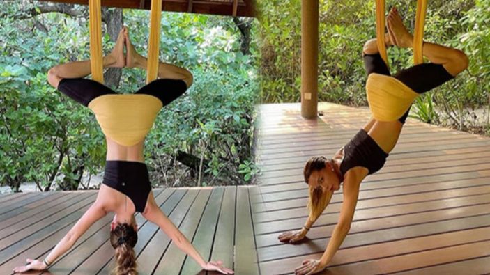 Şallı, son olarak Antigravity Yoga (Hamak Yogası) yaptığı anları yayınladı. Sınırları zorlayan eski manken, birbirinden ilginç pozlar verdi.