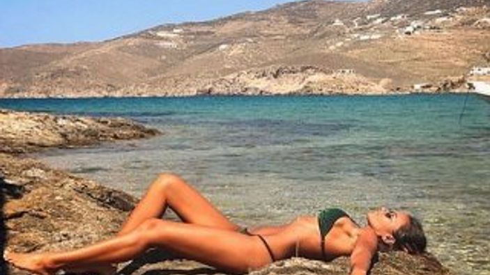 Eda Taşpınar, Instagram hesabından kayalıkların üzerine uzanarak verdiği bikinili fotoğrafını paylaştı.