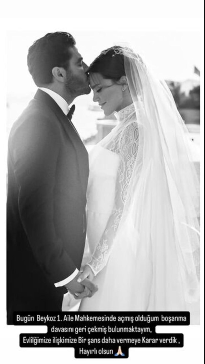 Ancak çift, bugün beklenmedik bir şekilde evliliklerine bir şans daha verdiklerini açıkladı. Uğur Akkuş, sosyal medya hesabından yaptığı paylaşımda, "Bugün Beykoz 1. Aile Mahkemesi'nde açmış olduğum boşanma davasını geri çekmiş bulunmaktayım. Evliliğimize, ilişkimize bir şans daha vermeye karar verdik. Hayırlı olsun." ifadelerini kullandı.