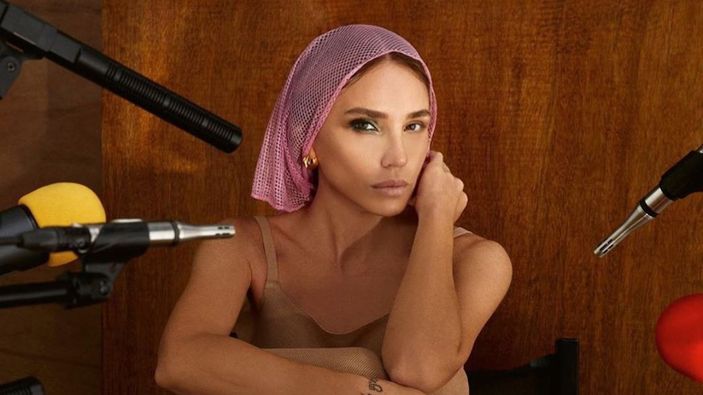 Beyaz bir takım giyen şarkıcı, cüretkâr pozuyla dikkatleri çekti.
