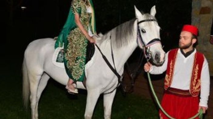Ünlü oyuncu İpek Tanrıyar, kına gecesine atla geldi.