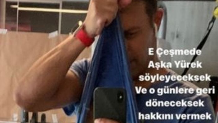 Mustafa Sandal, spor salonunda yaptığı çalışma sonrası kaslarını sergilediği fotoğrafı; “E Çeşme’de Aşka Yürek söyleyeceksek ve o günlere geri döneceksek hakkını vermek gerekiyor” notuyla paylaştı ve selfie karesinin üzerine "Filtre yok" notunu düştü.