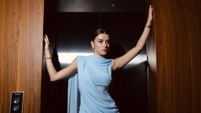 Oyuncu İlayda Alişan dekolteli mini elbisesiyle poz verdi