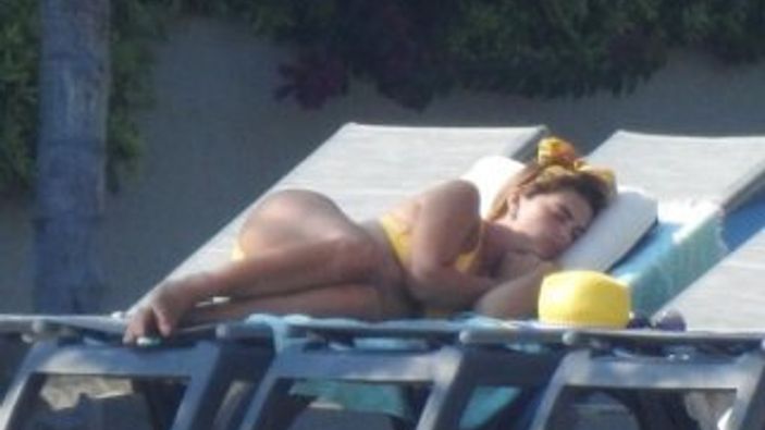 Sarı bikinisini aynı renkteki saç aksesuarıyla tamamlayan ünlü oyuncu, şezlongunda güneşlenirken uyuyakaldı. 2 çocuk annesi oyuncunun, fit hali dikkatlerden kaçmadı.