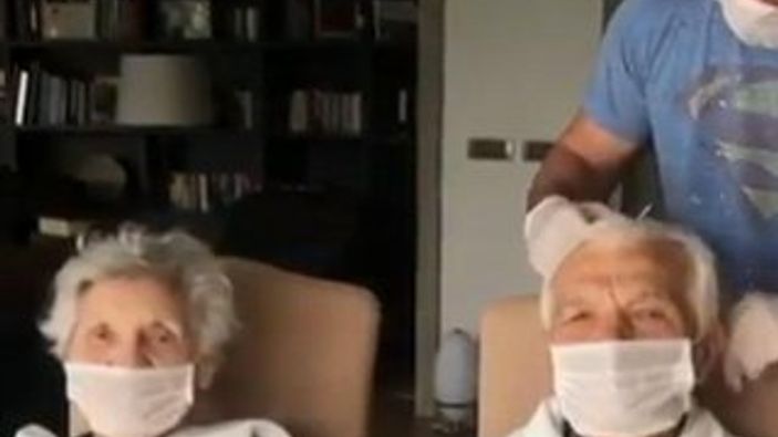 Koronavirüs salgını sonrası karantina günlerini anne ve babasıyla birlikte geçiren iş adamı Sadettin Saran, berberlik de yaptı. Sadettin Saran, anne ve babasının saçını tıraş etti.