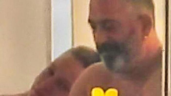 Ünlü komedyenin telefonundan gösterip anlattıklarına kahkahalarla karşılık veren Sarıkaya, sevgilisini omzundan öperken görüntülendi.