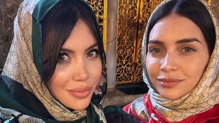 Galatasaray'da forma giyen Mauro Icardi'nin eşi Wanda Nara, kız kardeşi Zaira Nara'yı Ayasofya'ya götürdü.