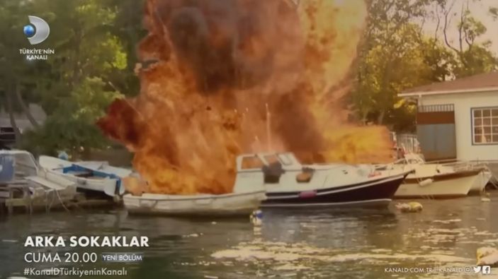Arka Sokaklar'ın yayınlanan fragmanında: Rıza Baba ile uğraşan mafya babasının, ailesinin bindiği tekneye bomba koyduğu ve patlattığı görüldü.