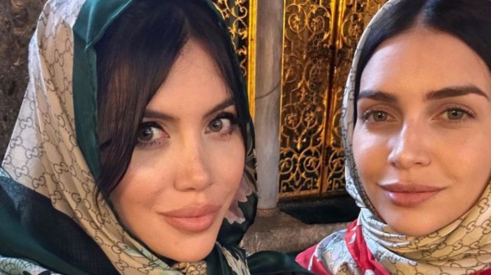 Wanda Nara gönülleri fethetti! Wanda Nara ve kardeşi Ayasofya ziyaretinde başörtüsü taktı..