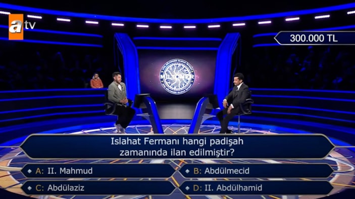 Kim Milyoner Olmak İster’de 300 bin TL'lik Islahat Fermanı sorusu
