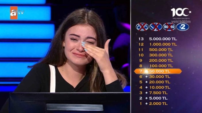 Kim Milyoner Olmak İster'de başarılı performansıyla dikkat çeken Beril Çavuş, cevabını doğru bildiği sorunun ardından gözyaşlarına hakim olamadı.