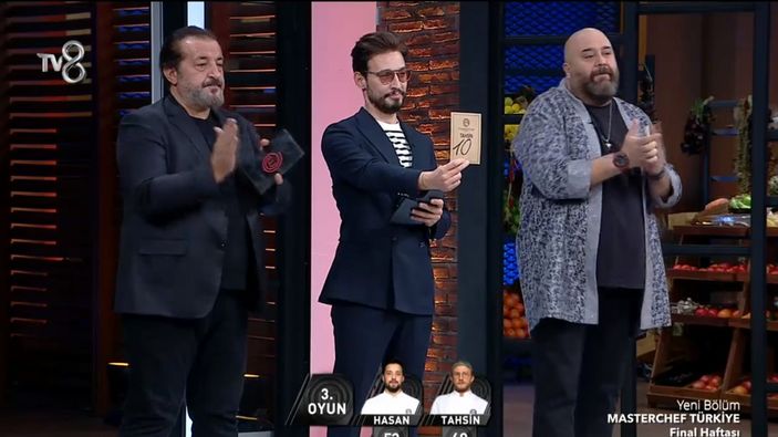 MasterChef tarihinde böylelikle ilk kez 10 tam puan kullanıldı. Şefler Hasan ve Tahsin’in tatlılarını ayakta alkışladı.