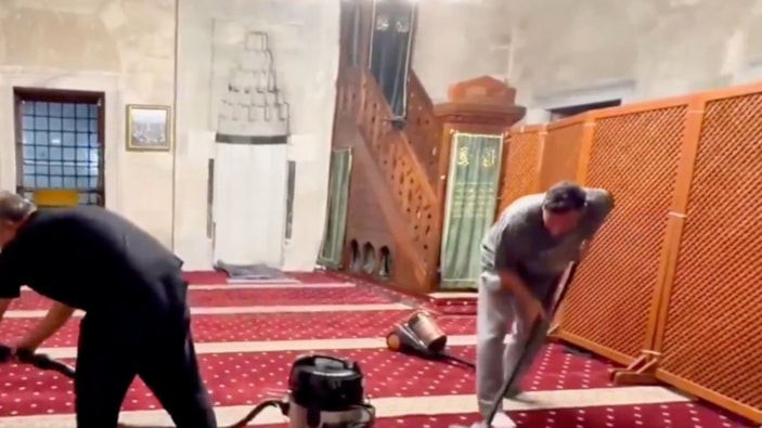 CAMİ TEMİZLERKEN GÖRÜNTÜLENDİ