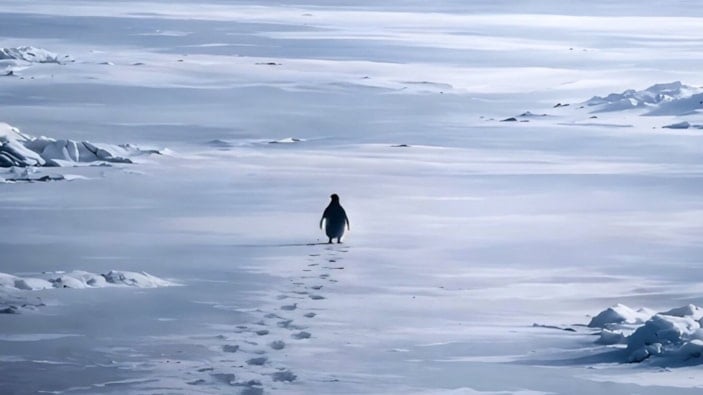 2007 yapımı bir doğa belgeselinden gündem olan penguenin sürüsünden ayrıldığı anlar sosyal medyada damga vurdu.