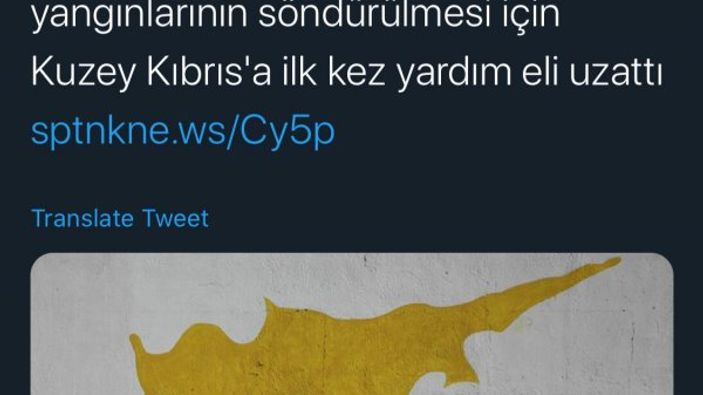 KKTC'de çıkan yangının söndürülmesi için yardım gönderen Rum Kesimi'nin, Sputnik haberinde Kıbrıs Cumhuriyeti diye geçmesi dikkat çekti.