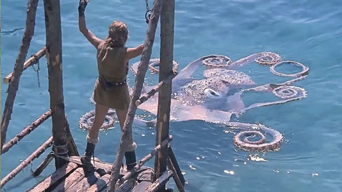 Viking Kanı çizgi romanında ceza unsuru olarak ejderha kullanılsa da filmde teknik yetersizlikler sebebiyle ahtapot unsuru kullanılmıştır.