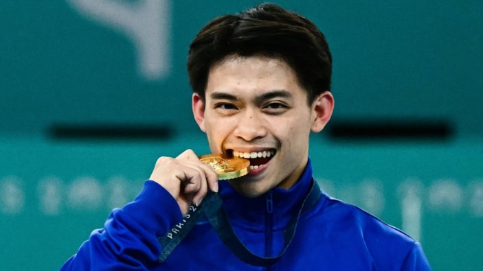 Carlos Yulo, 2024 Paris Olimpiyatları'nda yer ve atlama müsabakalarında jimnastikte iki altın madalya kazandıktan sonra ülkesinde resmen bir kahramana dönüştü.