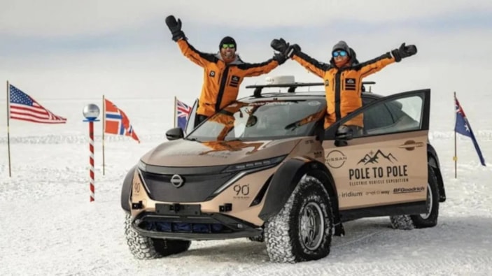 Yaklaşık 9 aylık bir yolculuğun ardından, tamamen elektrikli Nissan Ariya kullanan iki maceracı, kutuplar arası seyahatlerini tamamladı.